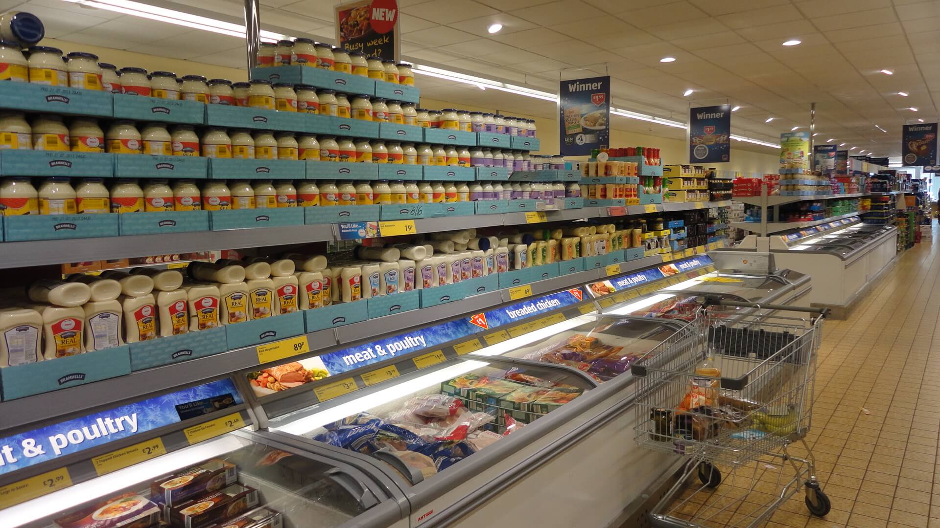 Bir markete girdiginiz zaman zaten sunu goruyorsunuz. Hemen hemen yarisi buzdolabi, diger yarisi konserve. Bizdeki gibi genis meyve sebze reyonları yok. Hersey kutulanmış yada dondurulmuş. Taze tukettigin pek birsey yok. Surekli hazır tuketmeye bizim bunye alışık olmadıgı için, ben yemek yapmayi burada ogrendim. Gecenlerde biber almak istedim. Yesil sivri biber. Gezmedigim market kalmadi. Tesco’sundan Aldi’sine… Tek bir yerde buldum. O da bir hintlinin dukkaninda. Biberin kasasina baktim Turkiye yaziyor, bizden gitmiş :)) (İngilizler dolmalık biber tuketiyorlar biber olarak, sivri biber satılmıyor marketlerinde.)