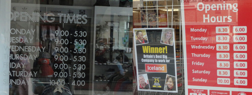 İnsanların iş dışında da bir hayatları oldugu düşünülmüş. Bu yuzden çalışma saatleri çok insani. Özellikle perakende gibi bazı sektörlerde, bizim ülkeyle burası arasındaki fark açıkça goruluyor. Bu iyi mi kötü mü tartışılır tabi, özellikle hizmet alan açısından. Burada en uzun açık kalan supermarket zincirinin çalışma saati 8:30-18:00 (Pazar ise 10:00-16:00). 18:00’den itibaren tüm işyerleri, dükkanlar her yer kapalı oluyor. Herkes evinde oluyor.